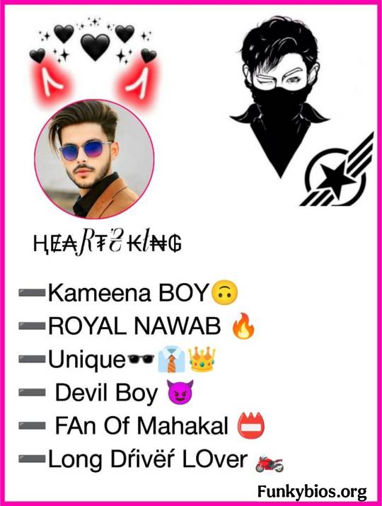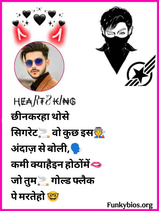 दोस्तों आजकल फेसबुक पर लोग तरह तरह के Bio लगाना पसंद करते हैं ताकि उनका फेसबुक अकाउंट खूबसूरत स्टाइलिश और अट्रैक्टिव दिखे. और कुछ लोग ऐटिटूड वाले होते हैं जो ऐटिटूड बायो लगाना पसंद करते हैं क्या आप भी Attitude के दीवाने है तो आपको फेसबुक प्रोफाइल मे यह Facebook Bio For Boys Attitude जरूर लगाने चाहिए. दोस्तों हमने यहां पर सभी Best Facebook Bio For Boys दिए है अगर आपको इसमें से कोई भी Bio पसंद आये हे तो आप Copy ओर Paste करके अपने फेसबुक प्रोफाइल में लगा सकते हैं.