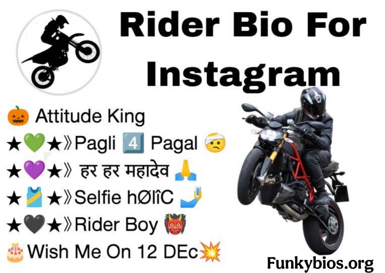 दोस्तों आपको यहां पर Bike Rider Bio For Instagram मिलने वाले हैं। अगर आप एक Bike Rider है और आप अपने इंस्टाग्राम बायो में Rider