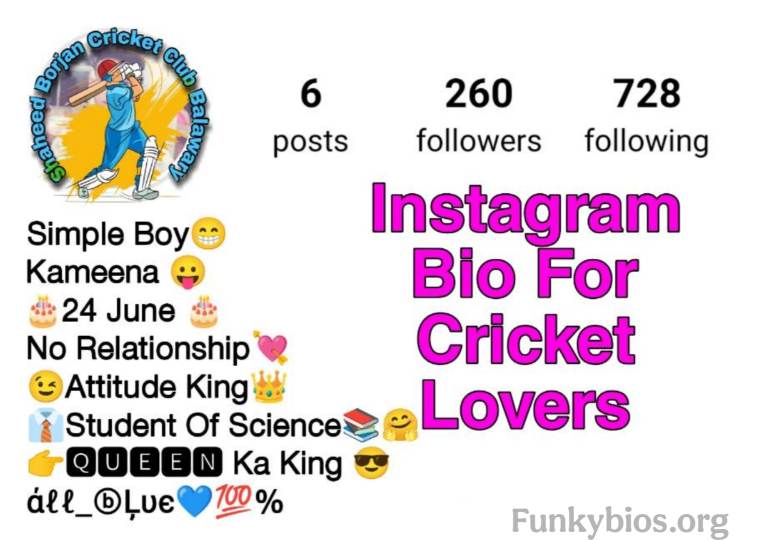 नमस्कार🙏 दोस्तो! स्वागत है आपका Funkybios.org में आज के इस पोस्ट में हम आपके साथ शेयर करने वाले है Instagram Bio For Cricket Lover जिसे