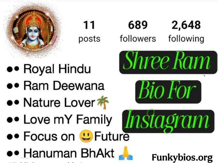 दोस्तों हमने यहाँ पर Shree Ram Bio For Instagram लिस्ट किए है जय श्री राम Instagram Bio Hindi जो सभी मेरे श्री राम भक्तो के